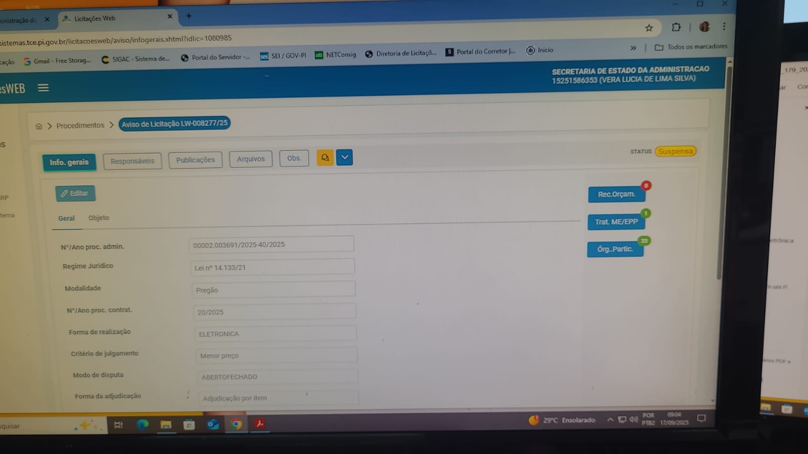RECIBO DE FINALIZAÇÃO NO TCE-PI PREGÃO 04-2023